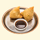 小麦粉で作った皮に具を詰めて揚げたインド風スナック。具は、スパイシーポテト(ベジタリアン)または牛ひき肉入りを選べます。