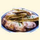 ひよこ豆を、柑橘味を効かせた スパイシーなセミドライソースで 味付けしたもの。インド風パンのバトゥーラとご一緒に。