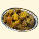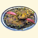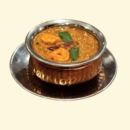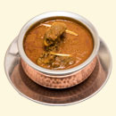 フェヌグリーク(スパイスハーブ)のグレイビーソースで煮込 んだフライ(フィッシュ/チキン)