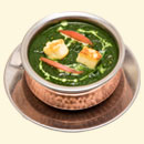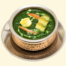カッテージチーズ入った、スパイスを効かせたほうれん草のカレー。