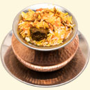 チキンを入れたバスマティライスを、伝統的な「ダム」という加熱方法で密封して炊き上げた香り高いインドの「炊き込みご飯」です。インド中南部の都市、ハイデラ バードの名物料理。