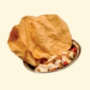 フワフワ食感の、イーストで膨らませた揚げパン。 チャナマサラとよく合います。