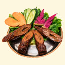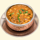 ひよこ豆を、柑橘味を効かせた スパイシーなセミドライソースで 味付けしたもの。インド風パンのバトゥーラとご一緒に。