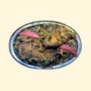 フェヌグリーク(スパイスハーブ)のグレイビーソースで煮込 んだフライ(フィッシュ/チキン)
