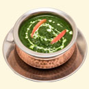 ほうれん草ペーストベースの軽い味付けのチキンカレー