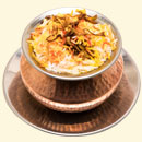 チキンを入れたバスマティライスを、伝統的な「ダム」という加熱方法で密封して炊き上げた香り高いインドの「炊き込みご飯」です。インド中南部の都市、ハイデラ バードの名物料理。