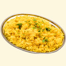 ターメリックを入れて炊いた黄色いライス (ベジタリアン)。